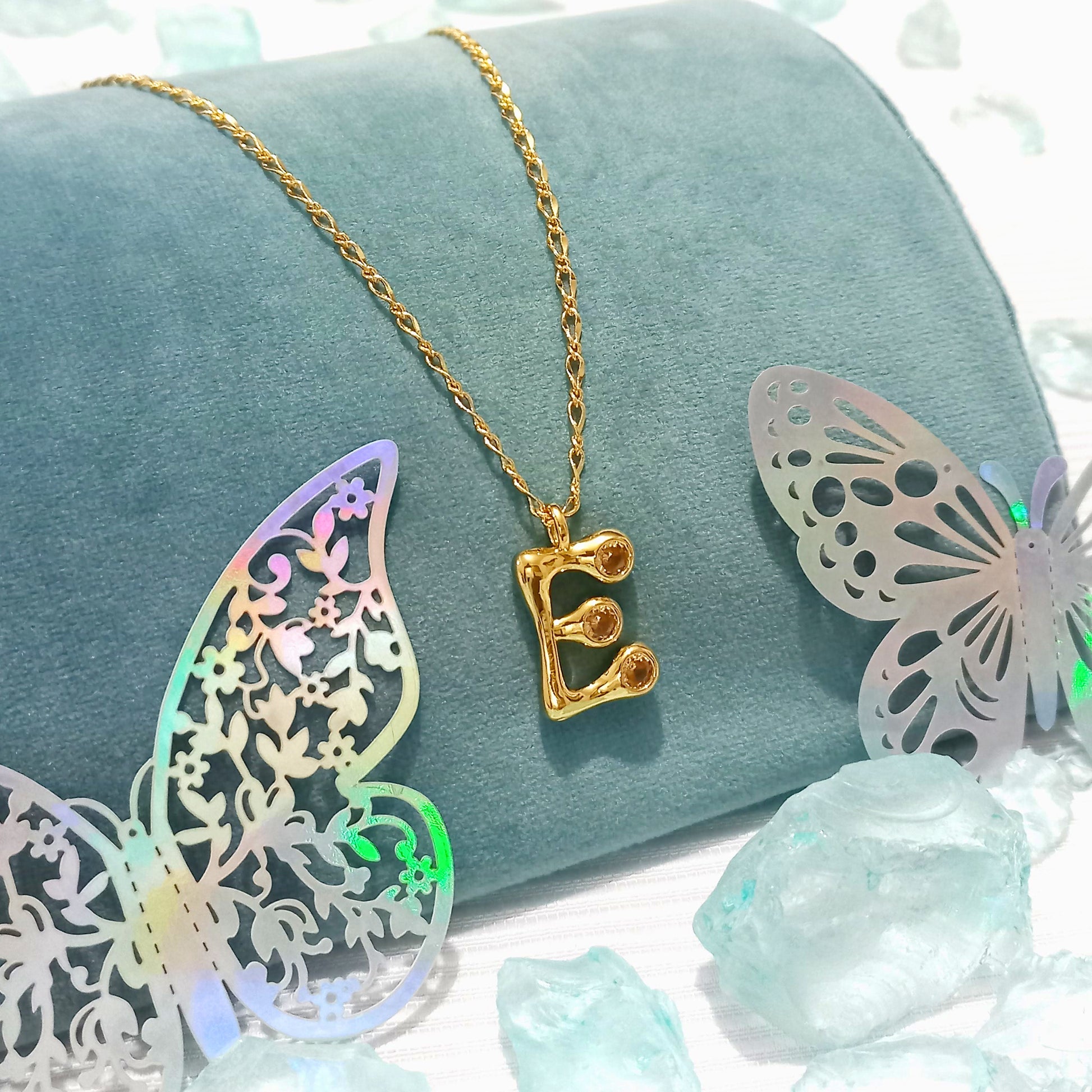 Este collar dorado con un delicado dije en forma de la letra "E" y con incrustación de tipo diamante en color ocre, es la elección ideal para quienes buscan una joya que combine estilo y significado personal. El dije está meticulosamente elaborado en un acabado dorado brillante, aportando un toque de elegancia y durabilidad. La cadena complementa perfectamente el diseño, ofreciendo comodidad y versatilidad para su uso diario.
