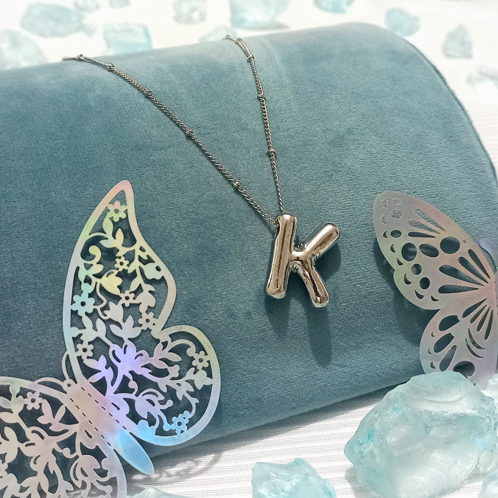 Este collar plateado con un delicado dije en forma de la letra "K" es la elección ideal para quienes buscan una joya que combine estilo y significado personal. El dije está meticulosamente elaborado en un acabado plateado brillante, aportando un toque de elegancia y durabilidad. La cadena complementa perfectamente el diseño, ofreciendo comodidad y versatilidad para su uso diario.
