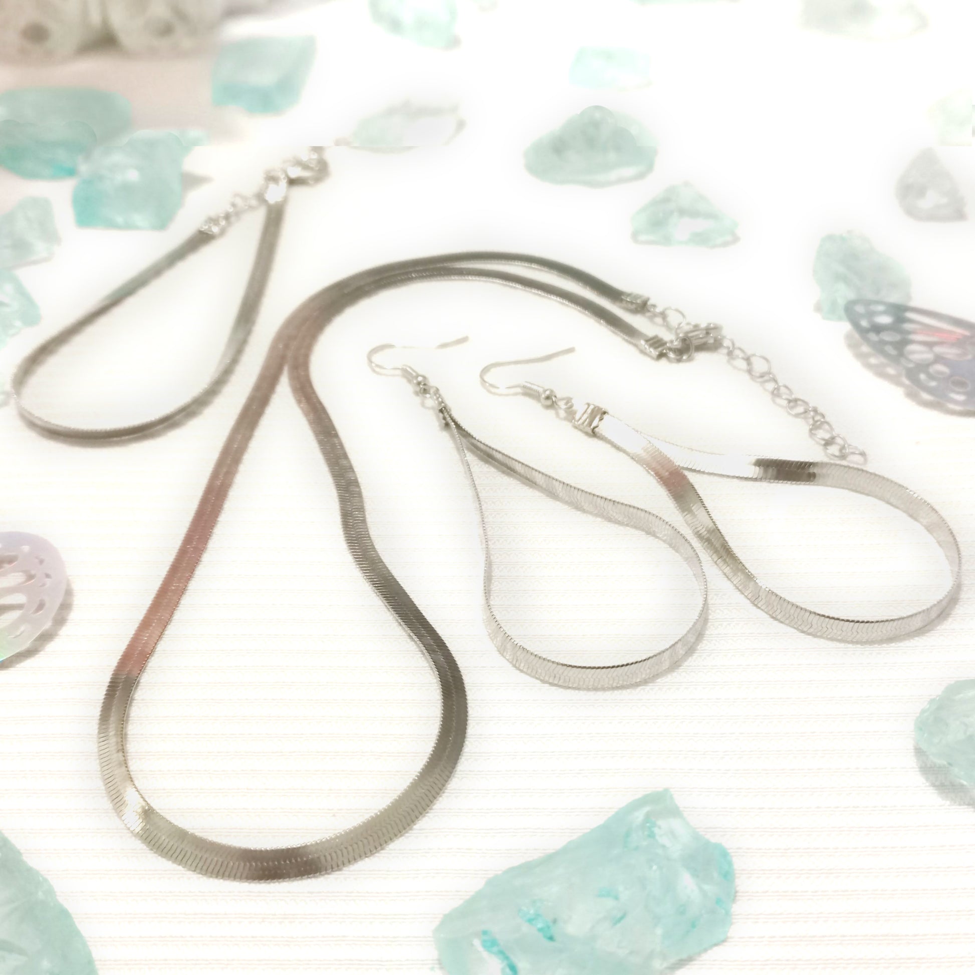 El collar incluye un cierre ajustable para adaptarse perfectamente a diferentes estilos, mientras que los aretes alargados añaden un toque sofisticado que estiliza el rostro. Fabricado con materiales de alta calidad, este set es liviano, cómodo y duradero, ideal para acompañarte tanto en eventos especiales como en tu día a día.