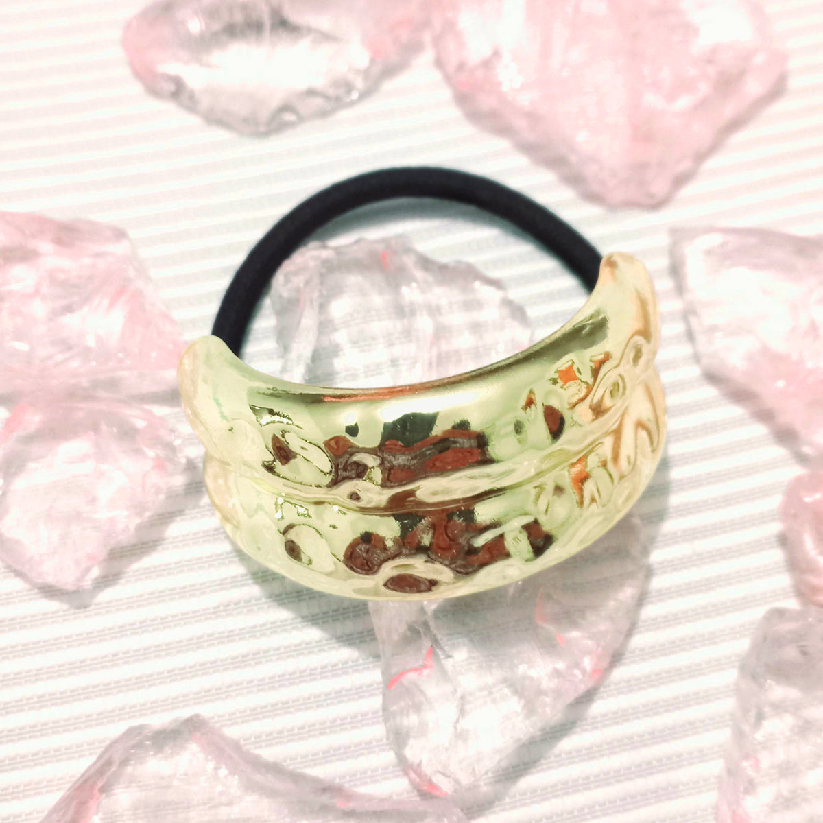 Este sujetador de cabello es la combinación perfecta de estilo y funcionalidad, diseñado para realzar tu look mientras mantienes tu peinado en su lugar. Con unas placas texturizadas doradas que captura la atención, este accesorio destaca por su sofisticación. La base de tela negra no solo añade un contraste elegante, sino que también es suave al tacto, protegiendo tu cabello de tirones innecesarios.